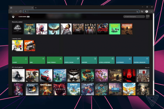 Images of xCloud running in-browser have also been acquired by The Verge (shown below), highlighting features including a simple launcher, game recommendations, and a fullscreen mode.